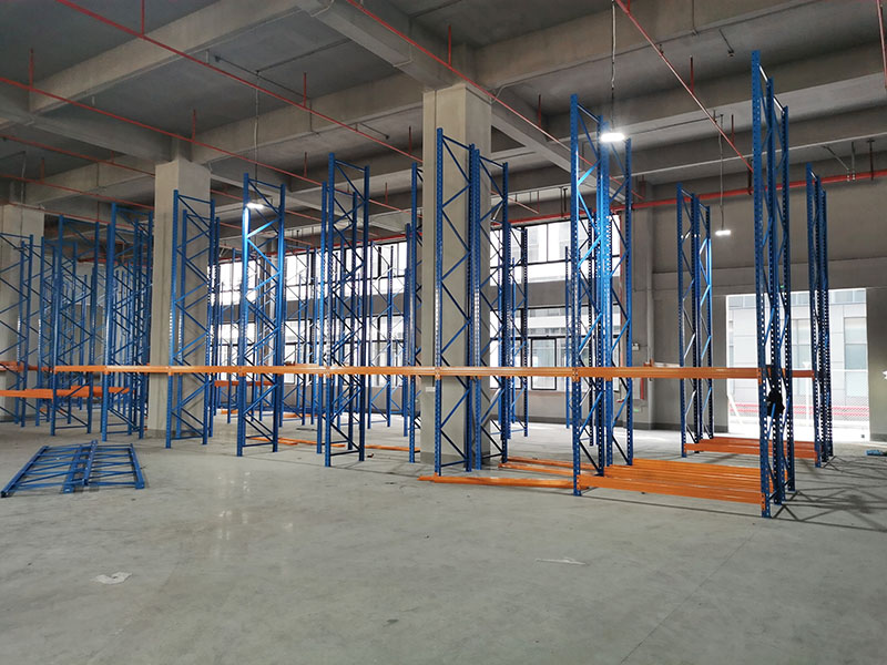 因?yàn)閭}庫的空間實(shí)在不夠用,在安裝重型貨架的時(shí)候,一邊快速地安裝著貨架,一邊把貨物放到剛安裝好的貨架上。